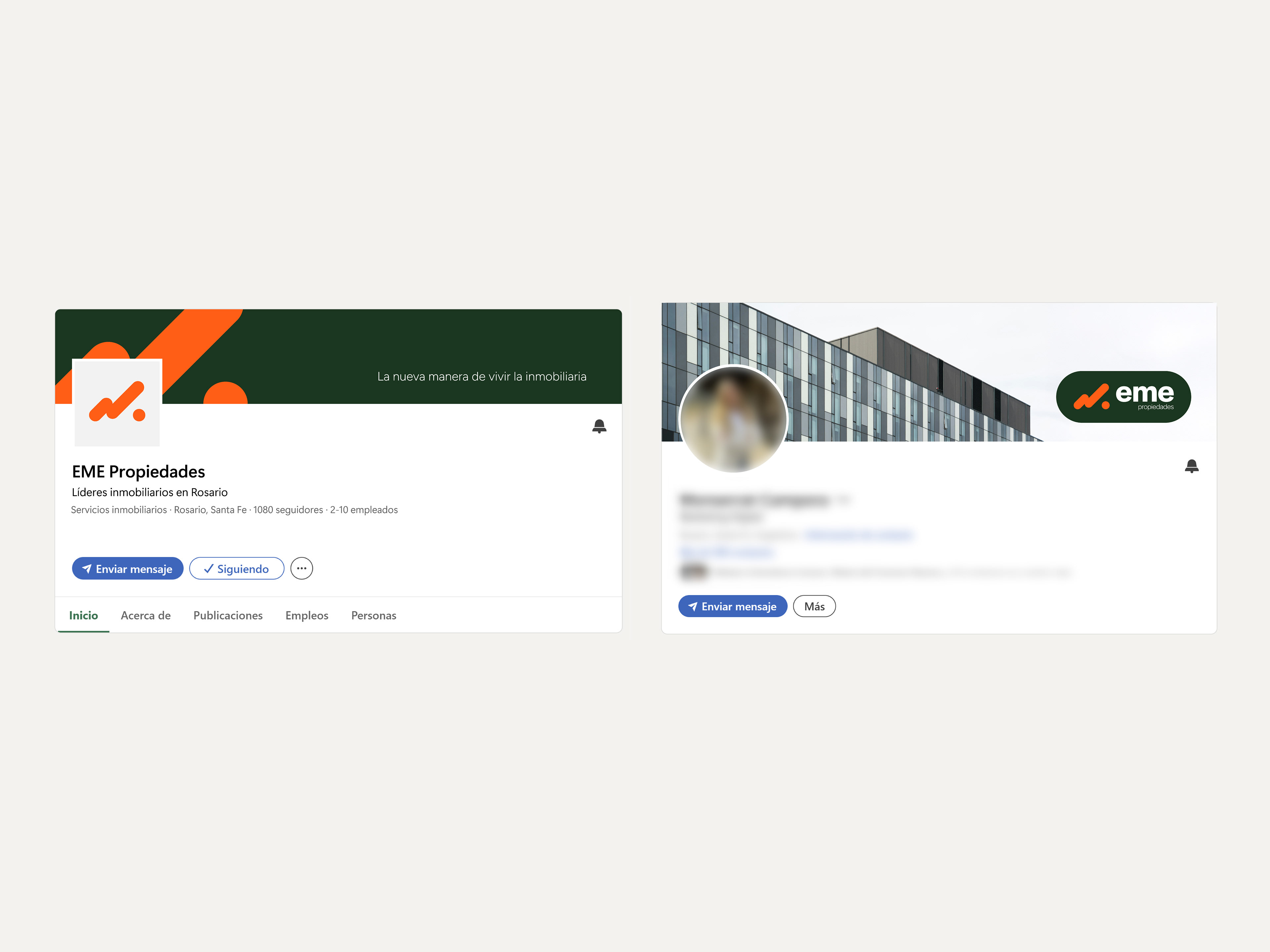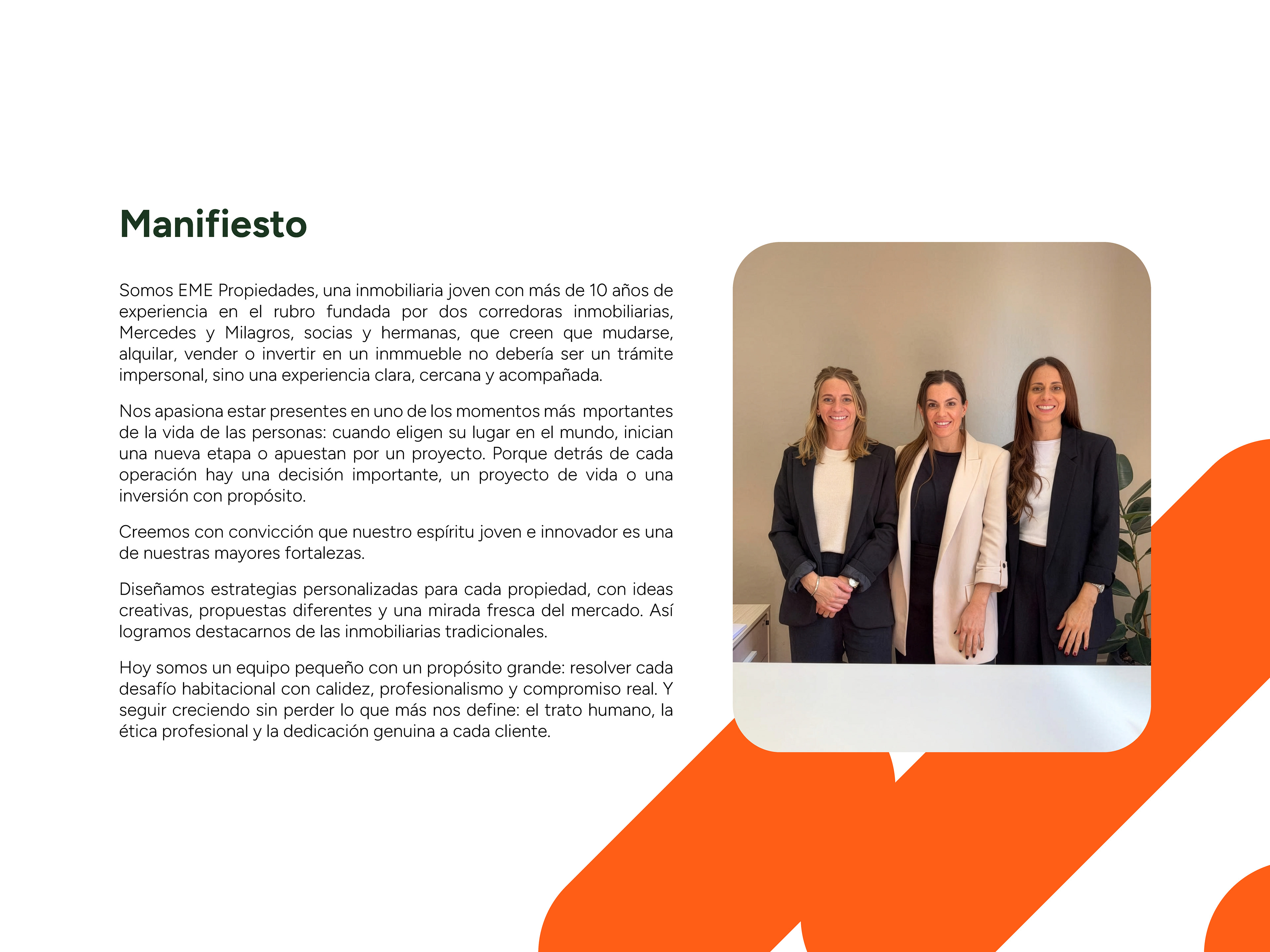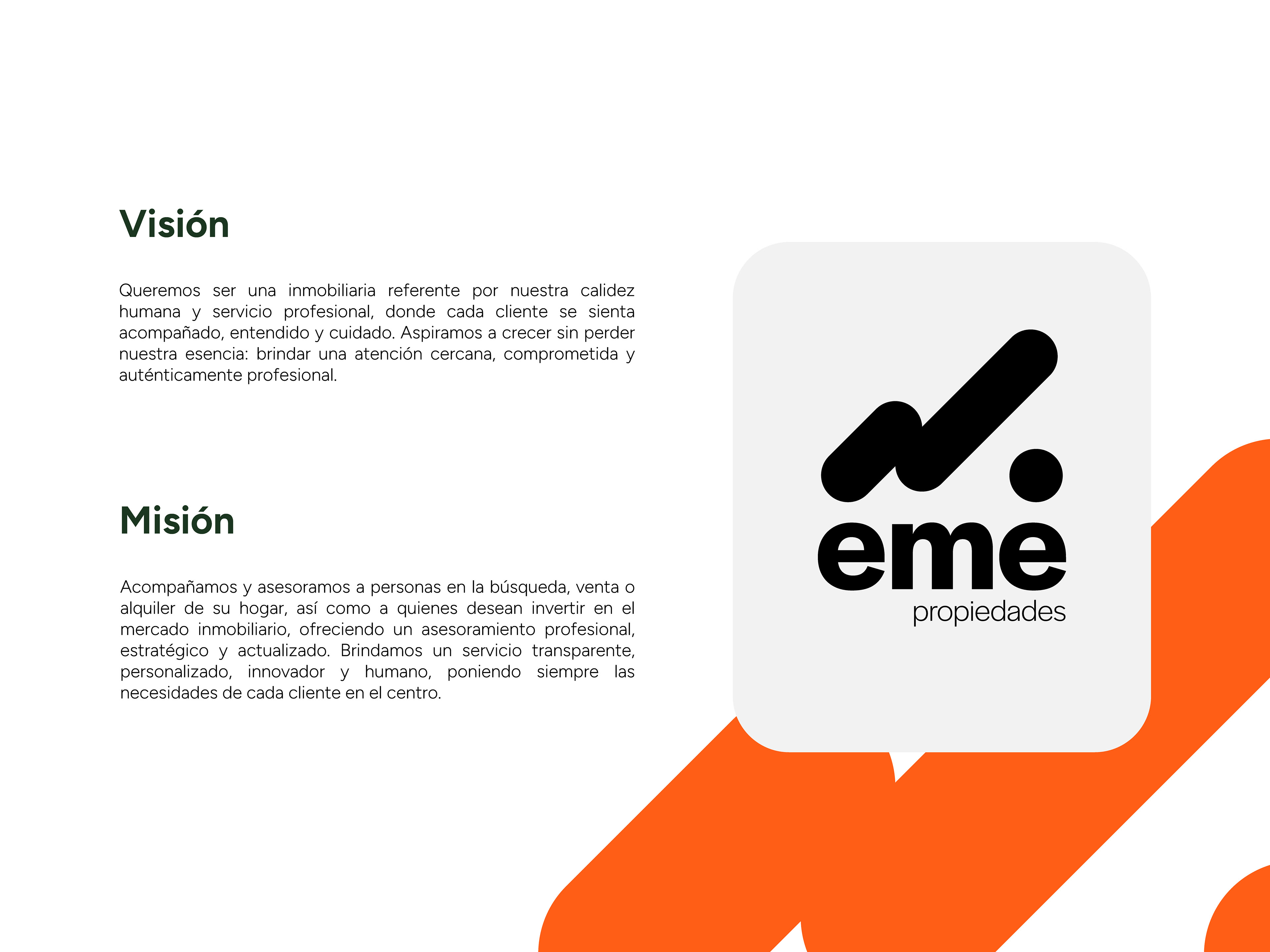 El desafío fue redifinir la experiencia inmobiliaria desde una mirada más humana, cercana y actual. EME, una inmobiliaria fundada por dos hermanas corredoras con más de diez años de trayectoria, buscaba una identidad que reflejara su manera distinta de hacer las cosas: con calidez, transparencia y compromiso real. Desde AGUANTE desarrollamos un rebranding integral que reposiciona a la marca en el mercado y traduce su esencia en un lenguaje visual contemporáneo. El punto de partida fue el concepto rector “redifinir la experiencia inmobiliaria” del cual surgió el nuevo eslogan “la nueva manera de vivir la inmobiliaria”, una frase que sintetiza la propuesta de valor de EME y guía toda su comunicación. El resultado es una identidad sólida y versátil, con un sistema visual que combina profesionalismo y cercanía. Una marca que transmite confianza, frescura y una nueva forma de habitar el mundo inmobiliario.