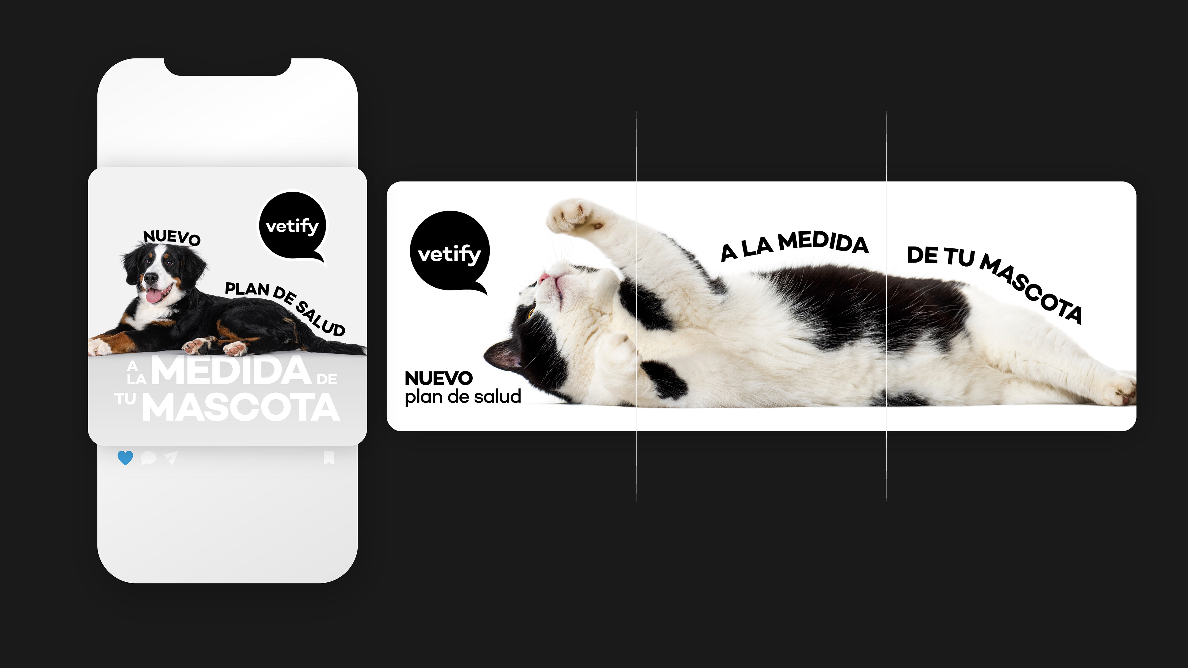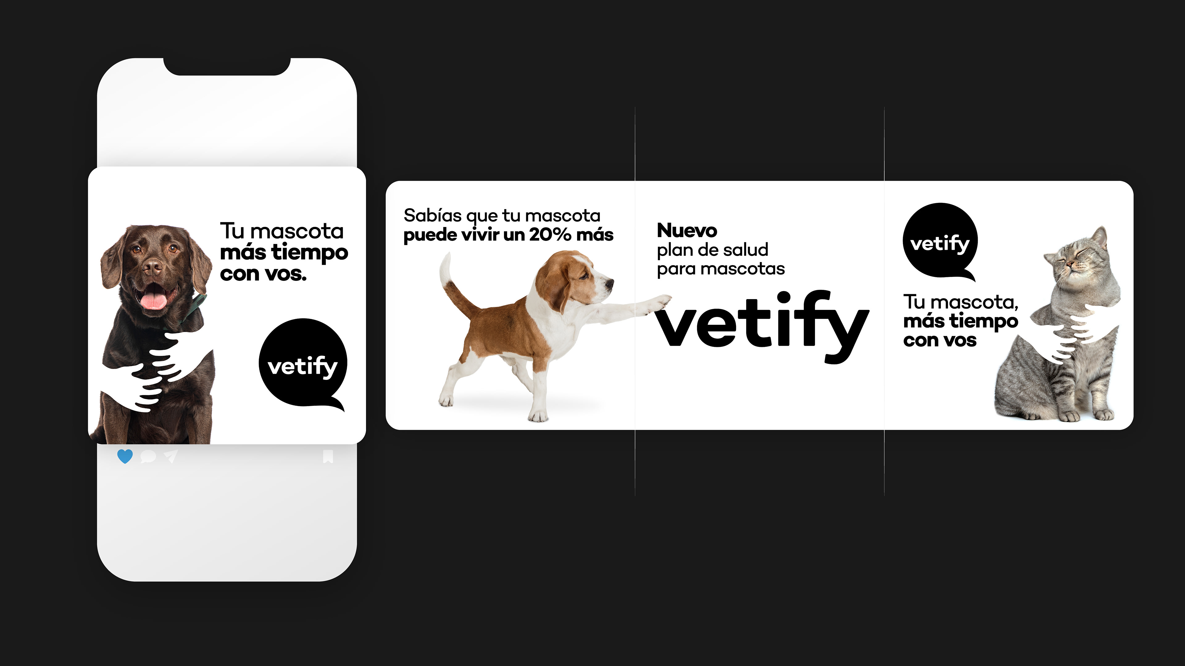 Dirección de arte y desarrollo visual para la campaña digital “Tu mascota, más tiempo con vos” de Vetify, en colaboración con AWD. Desde AGUANTE Estudio Creativo, nos encargamos de crear el universo visual de la campaña, trabajando la dirección de arte y el desarrollo de las piezas digitales para redes y medios online.